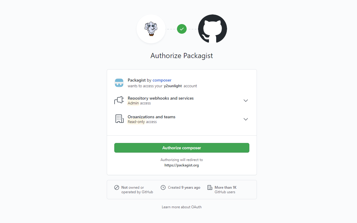https://packagist.org/api/github?username={Packagist username}application/jsonPackagist API Tokenどのイベント? プッシュイベントだけで十分です。