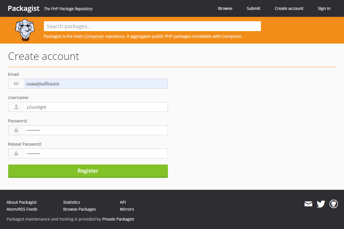 本章では、Packagistのアカウント作成方法を説明します。本章の前提条件をしては