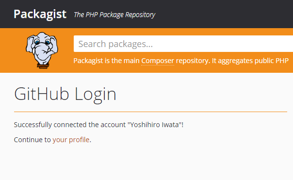 Packagistサービスフックを有効にすると、GitHubにプッシュすると、パッケージが常に即座に更新されます。