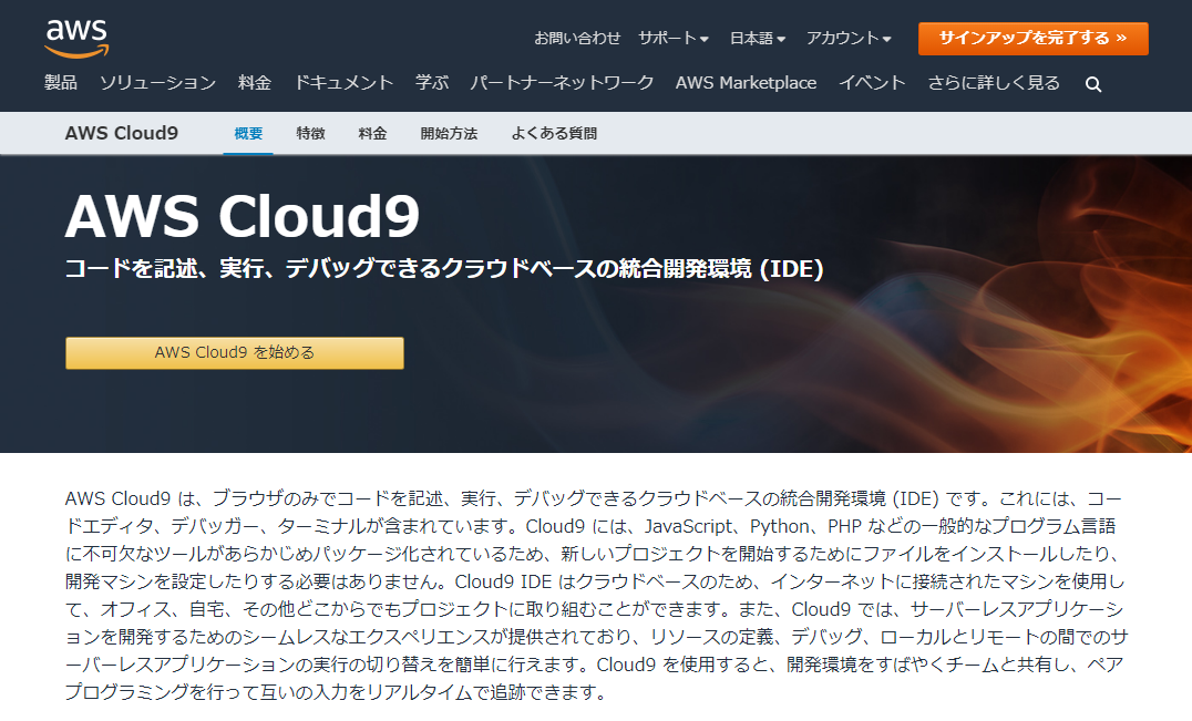 AWS Cloud9 はAWS(Amazon Web Services) 内のクラウドコンピューティングサービスの1つです。これを利用するためには、AWSへのサインアップが必要になります。