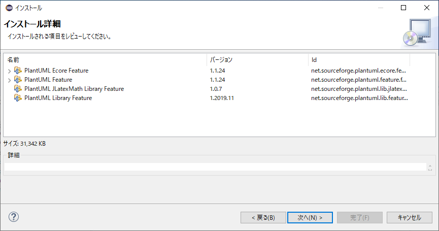 ■ 以下のように全ての項目を選択し、[次へ]を押します。