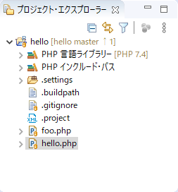ブランチは、Eclipseでは プロジェクトエ・クスプローラでプロジェクト名の横に表示されます。