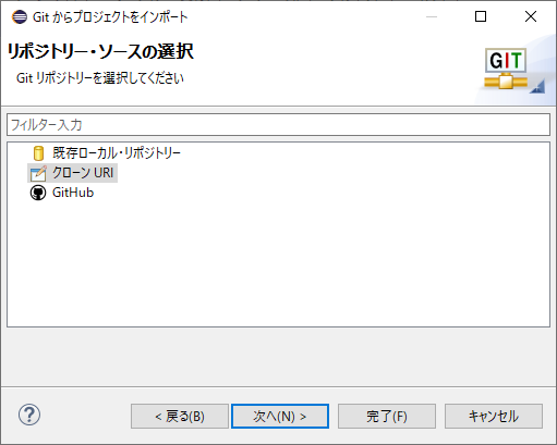 ■ [Git][Gitプロジェクト]を選択し、[次へ]を押します。