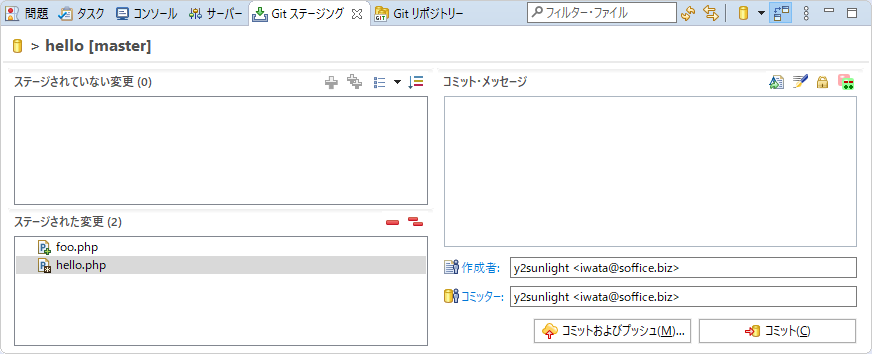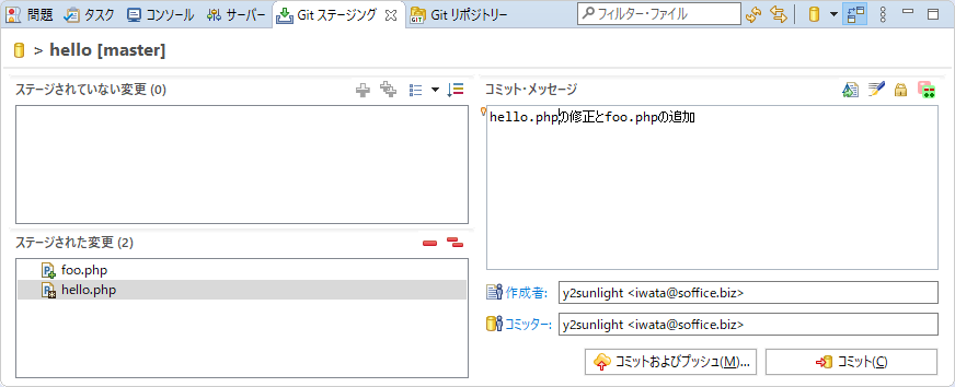 ■ コメント・メッセージを入力して[コミット]ボタンを押します。