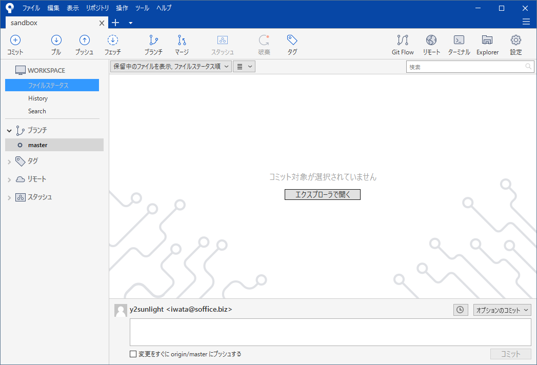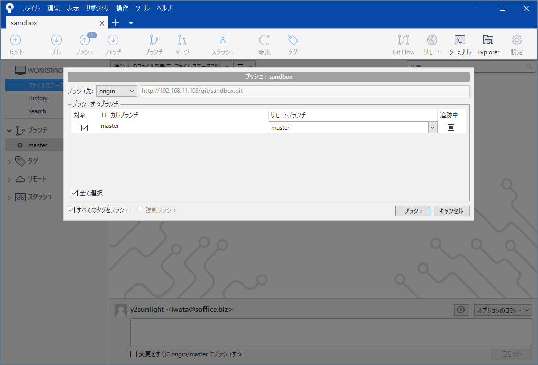 - プッシュ先 — origin:クローンしたリポジトリURLが表示されています。