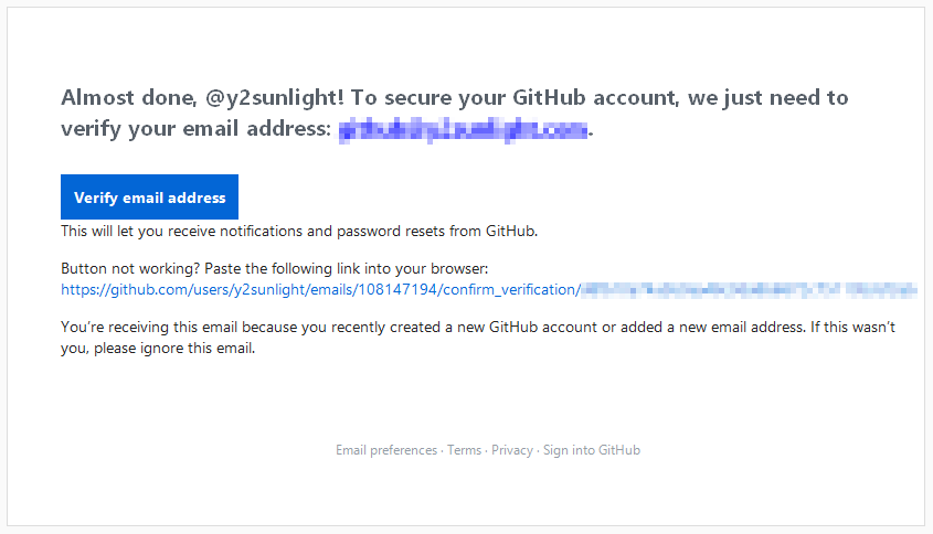 ■ 以下の画面が表示され、GitHubから認証用のメールが送信されます。