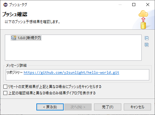 ■ [完了]ボタンを押して下さい。 ■ タグのプッシュが終わりました。