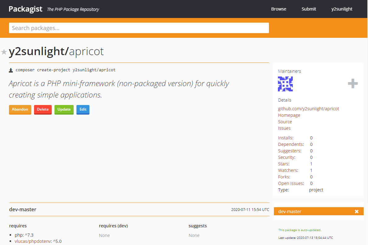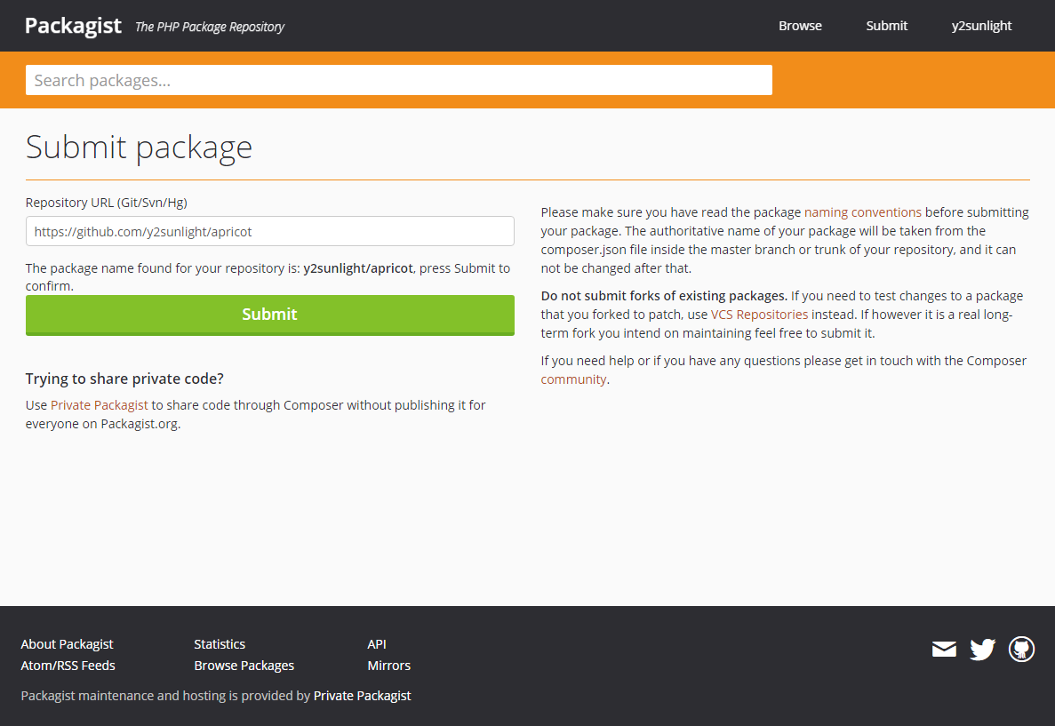 本章では、Packagistでのパッケージの登録方法を Apricot を例に説明します。本章の前提条件としては以下が必要になります。