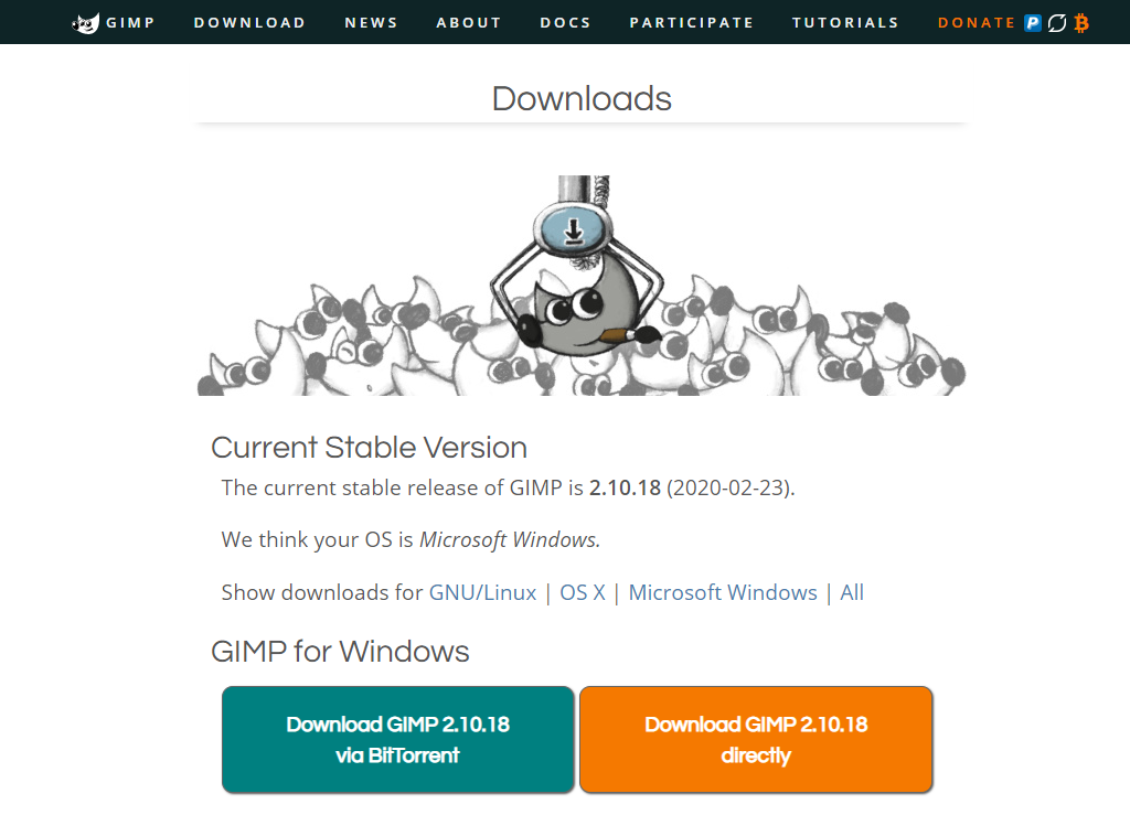 GIMPのサイト( https://www.gimp.org/ )にアクセスします。