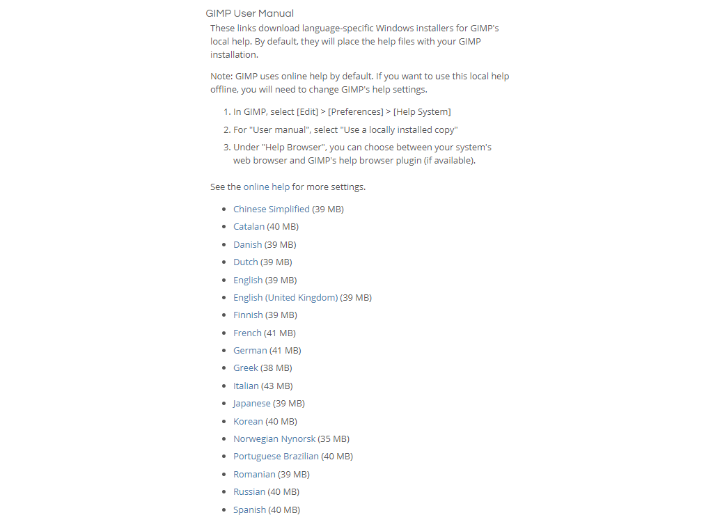 先のGIMPダウンロードページに「GIMP UserManual」がありますので、日本語のユーザマニュアルをダウンロードします。