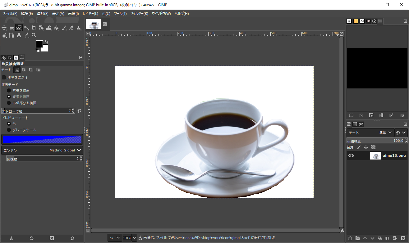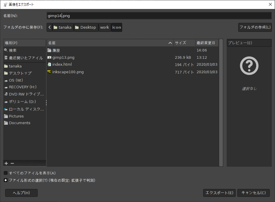 GIMPメニュー[ファイル][名前を付けてエクスポート]をクリックします。