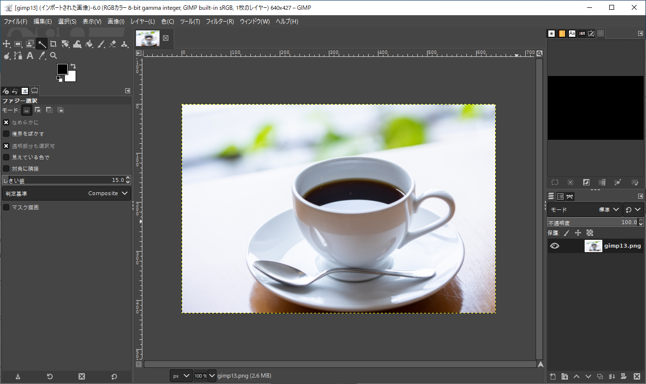 ■ [ファイル][開く/インポート]で、画像ファイルを選択します。