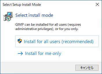 ダウンロードした gimp-2.10.18-setup.exe を実行します。