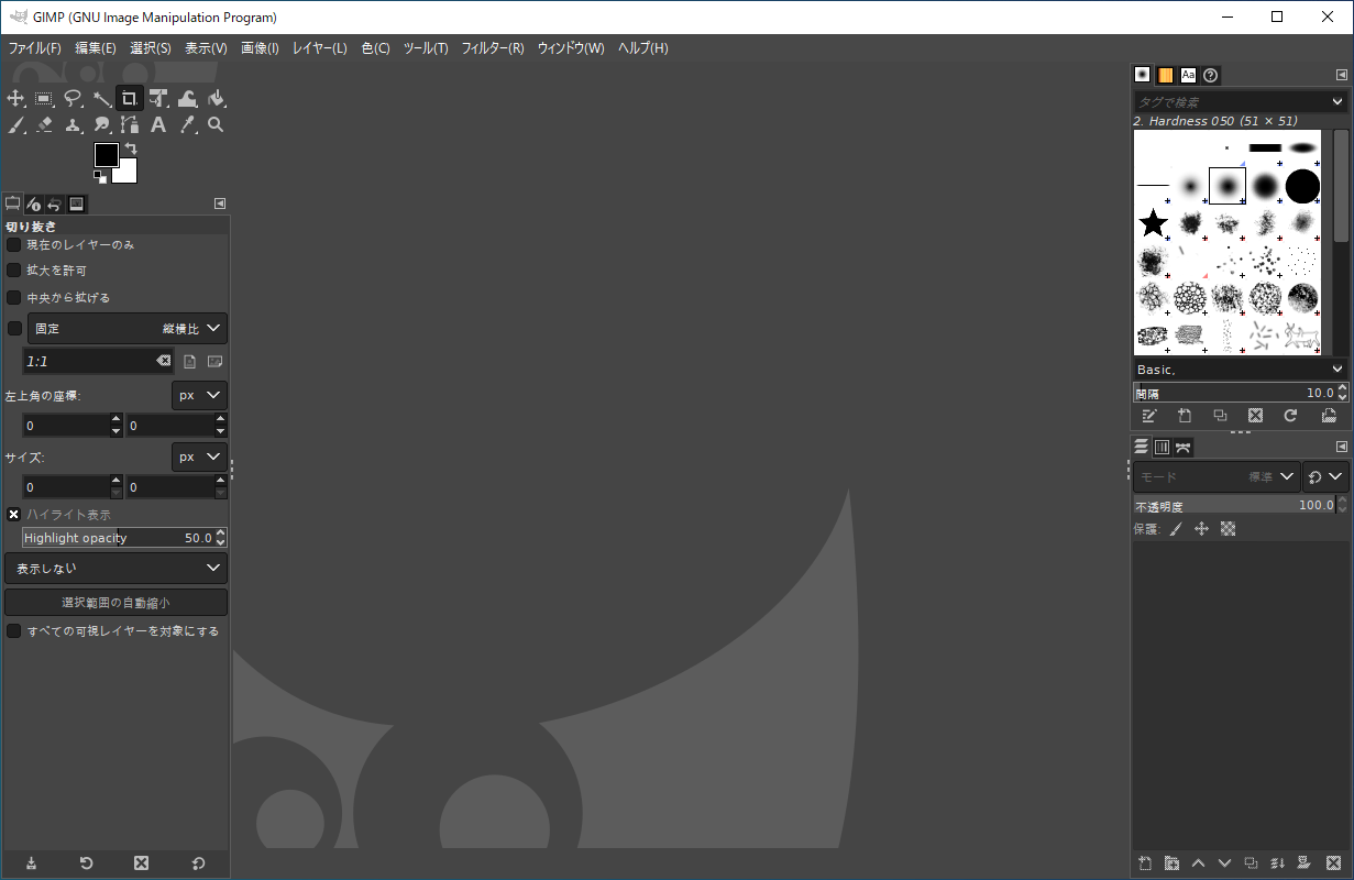 スタートメニュー[GIMP 2.10.18]をクリックして開きます。