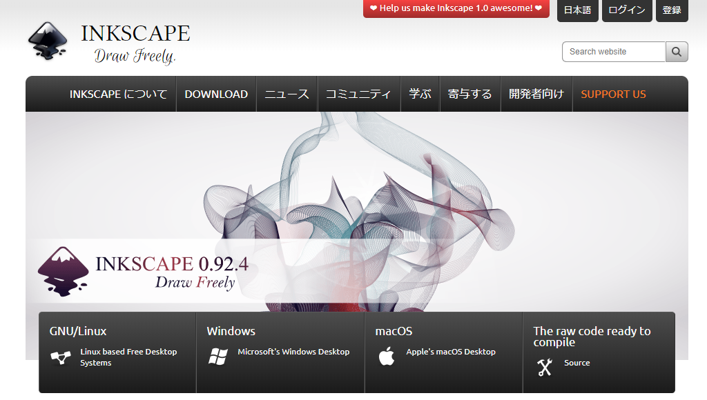 Inkscapeのサイト( https://inkscape.org/ja/ )にアクセスします。