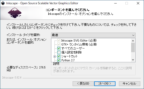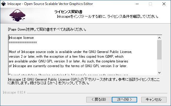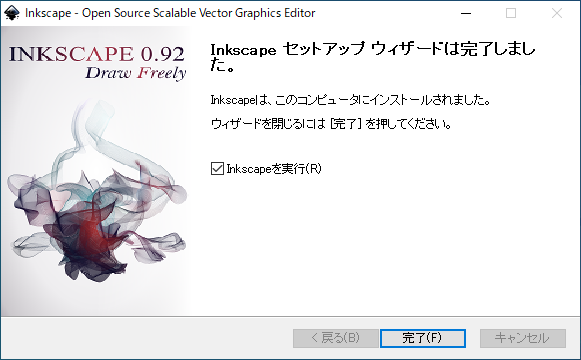 ダウンロードした inkscape-0.92.4-x64.exe を実行します。
