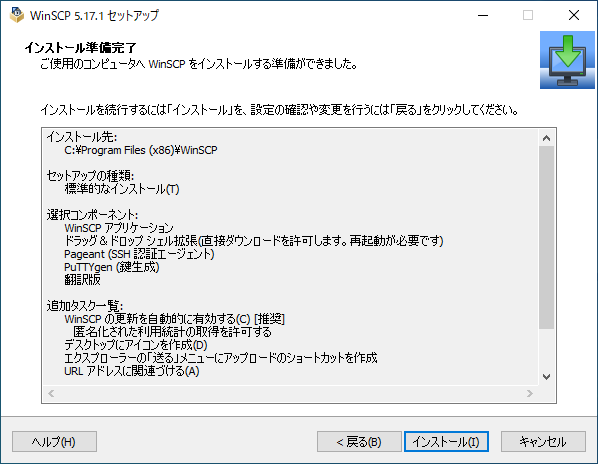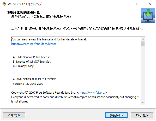 ダウンロードした WinSCP-5.17.1-Setup.exe を実行します。