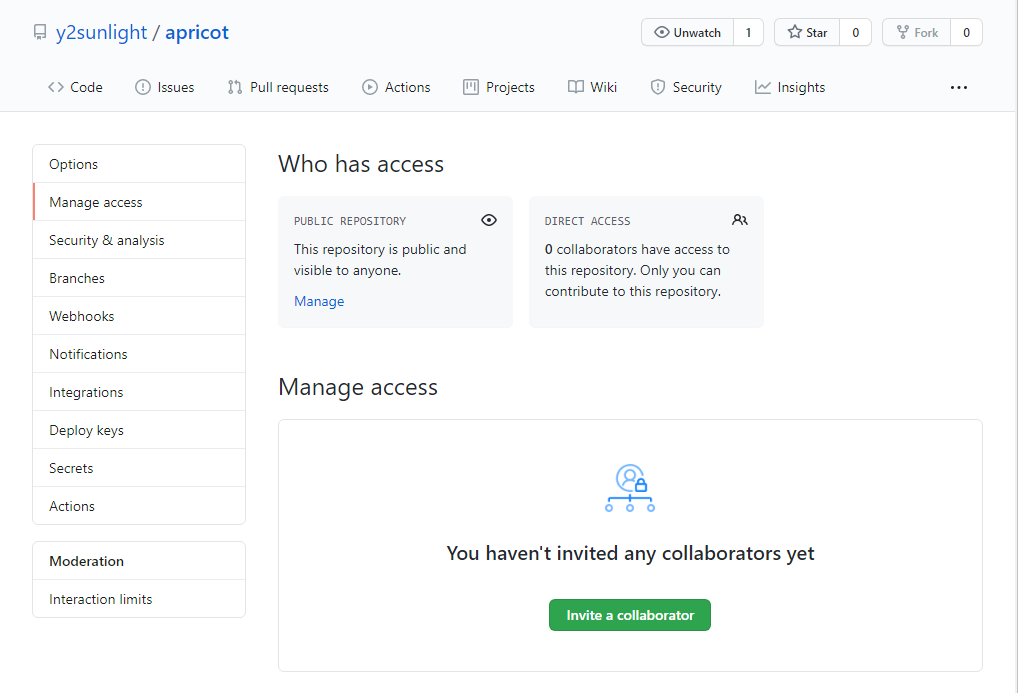 ■ 右の緑色の[Invite a collaborator]ボタンを押します。