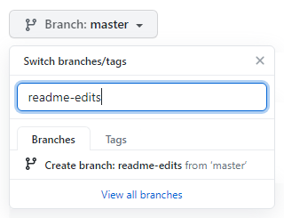 ■ [Branches]内の[Create branch: readme-edits from 'master']を選択して下さい。