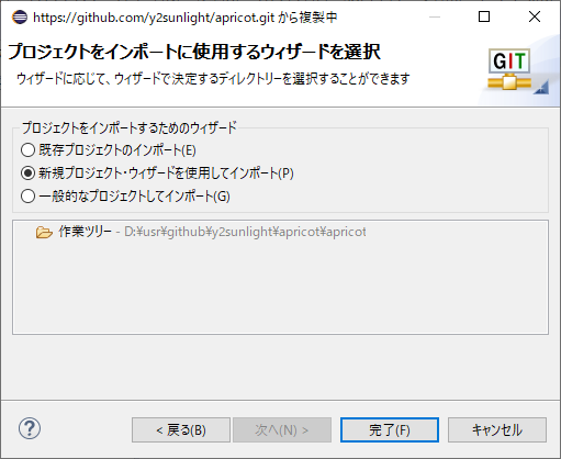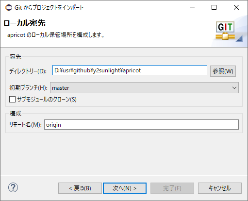 ここでは D:\usr\github\y2sunlight\apricot を指定します。