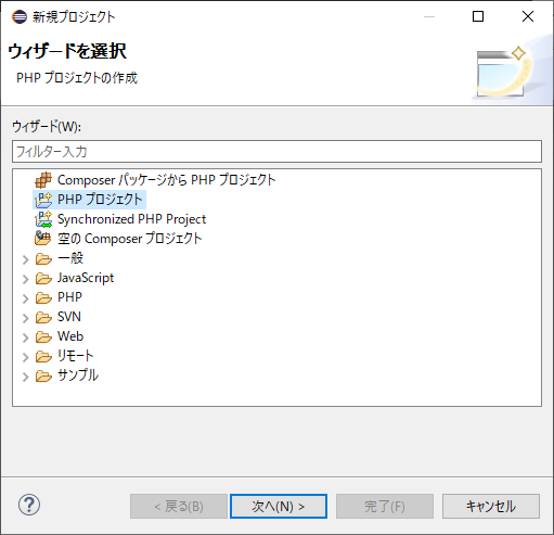 ■ [PHPプロジェクト]を選択して、[次へ]を押します。