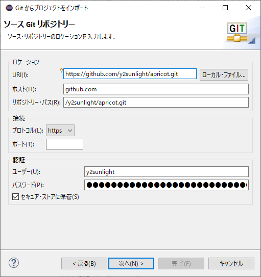 ここでは https://github.com/y2sunlight/apricot.git を入力します。