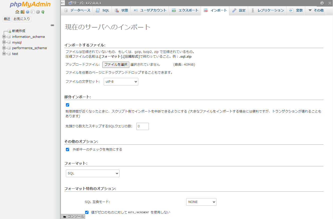 {XAMPP-Folder}\xampp-control.exe) または Windowsの [コンピュータの管理 > サービス] を使って mysqlサービスを停止します。mysql )を mysql.org リネームします。D:\tmp\mariadb-10.4.12-with-mroonga-9.12-winx64D:\tmp\mariadb-10.4.12-with-mroonga-9.12-winx64\mariadb-10.4.12-winx64D:\usr\xampp7.3.15\mysqlXAMPP で稼働中だった MariaDB の my.ini を新しいmysqlフォルダにコピーします。