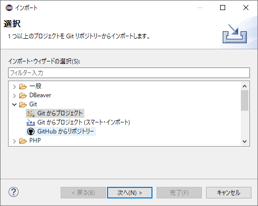 ■ [Git][Gitプロジェクト]を選択し、[次へ]を押します。