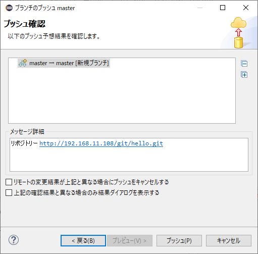 ■ プッシュ内容を確認して、[プッシュ]ボタンを押します。