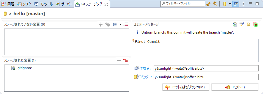 ■ コメント・メッセージを入力して[コミット]ボタンを押します。