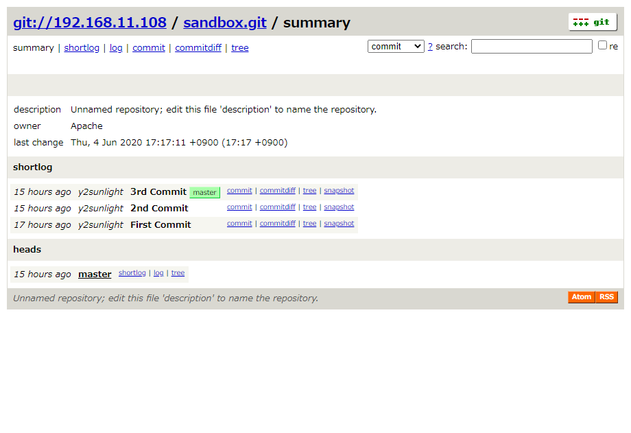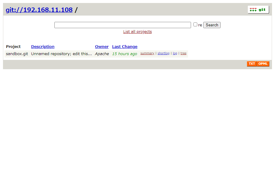 http://192.168.1.100/gitweb/ # IPアドレスは適宜変更して下さい