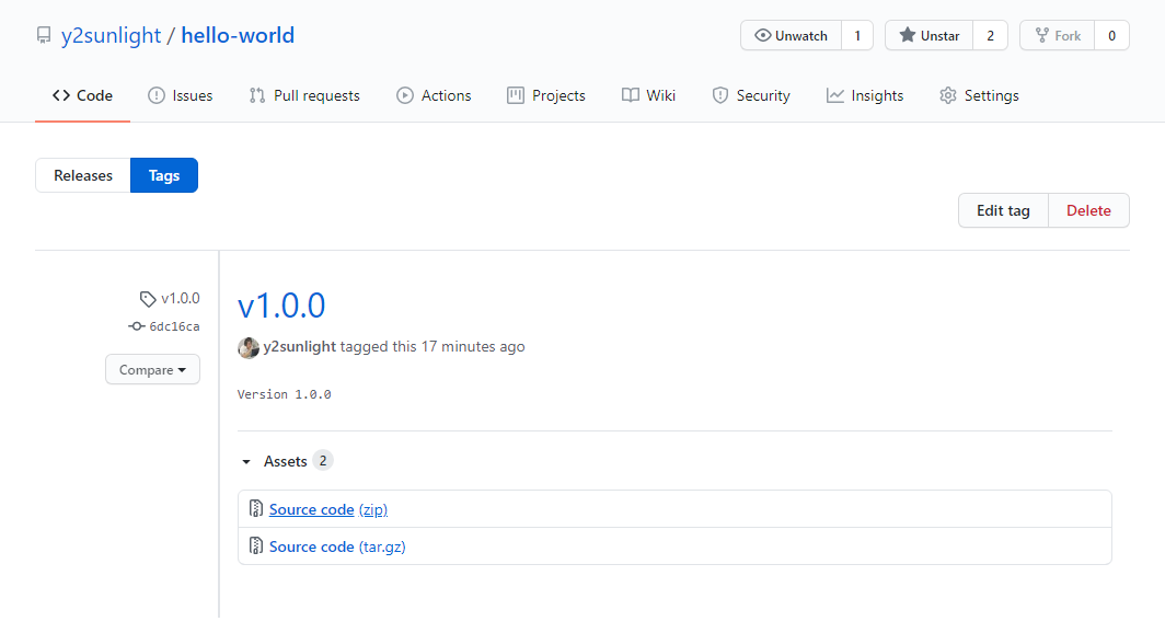 ■ バージョン番号( ここではv1.0.0)をクリックして下さい。 ■ タグの編集画面が表示されます。