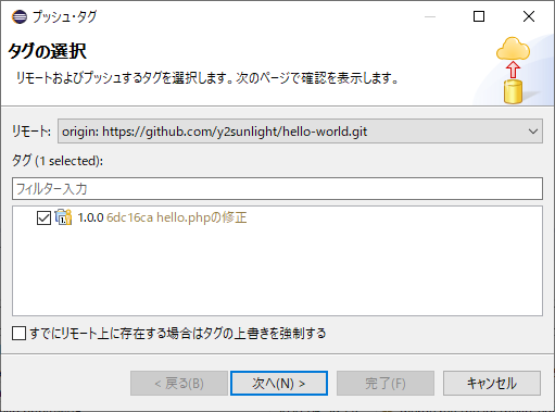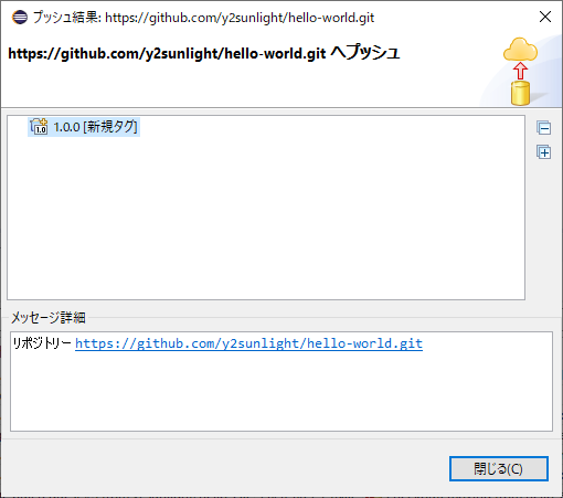 ■ [完了]ボタンを押して下さい。 ■ タグのプッシュが終わりました。