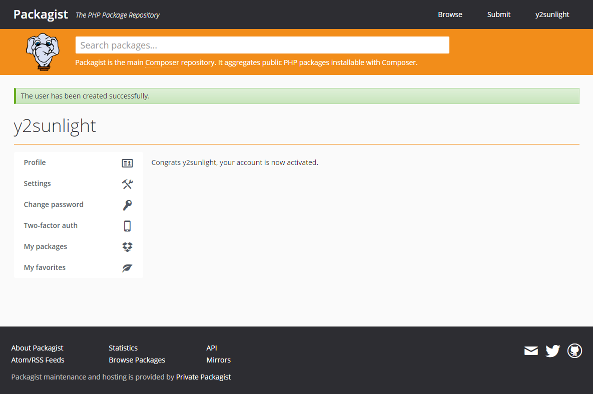 Packagistサービスフックを有効にすると、GitHubにプッシュすると、パッケージが常に即座に更新されます。