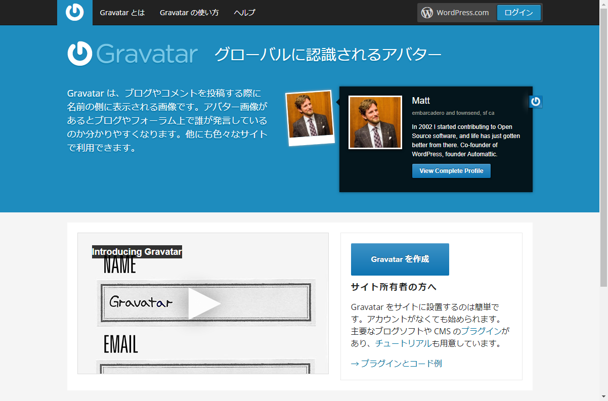 プロフィールのアバターは Gravatar というWebサービスを(秘密で?)使用しているようです。