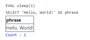 EVAL sleep(1); SELECT 'Hello, World!' AS phrase;