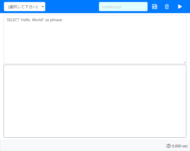 画面左上のセレクトボックスで保存済みのSQLスクリプトファイルを選択しSQLを読み込むことができます。例えば、同封されている