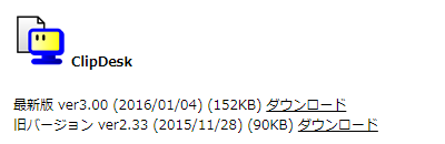 ClipDesk のサイト( http://hp.vector.co.jp/authors/VA028640/software/m_cdesk.xhtml )にアクセスします。