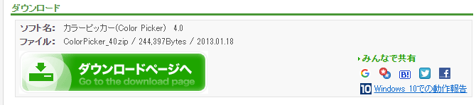 ■ [このソフトを今すぐダウンロード]をクリックし、ColorPicker_40.zip をダウンロードします。