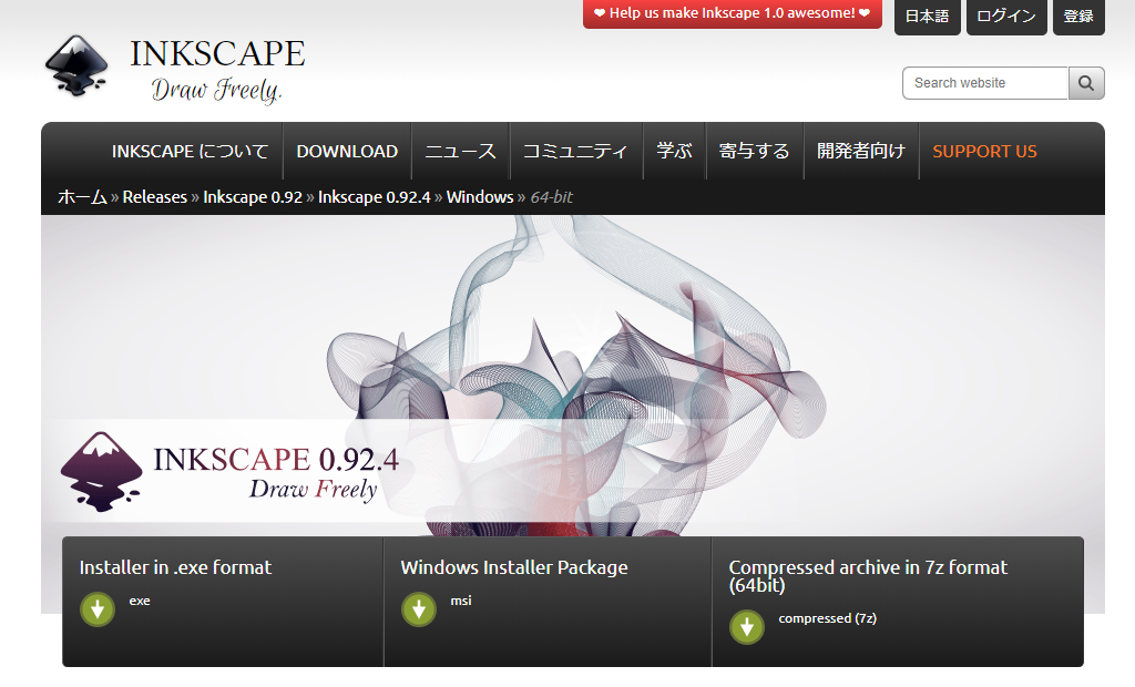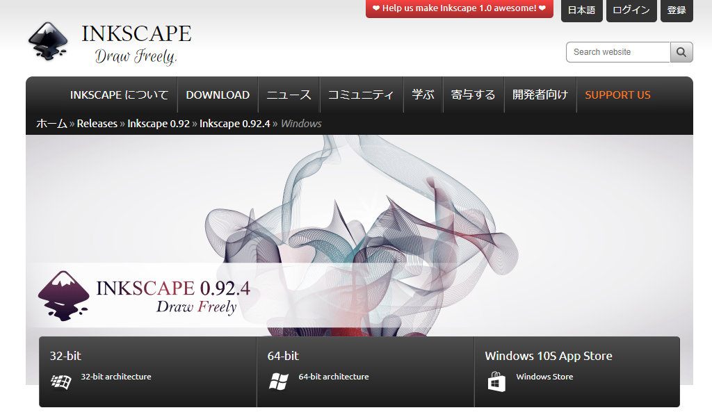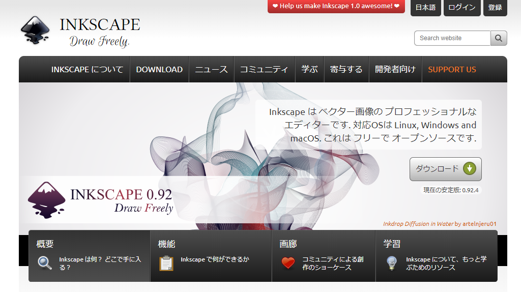 Inkscapeのサイト( https://inkscape.org/ja/ )にアクセスします。