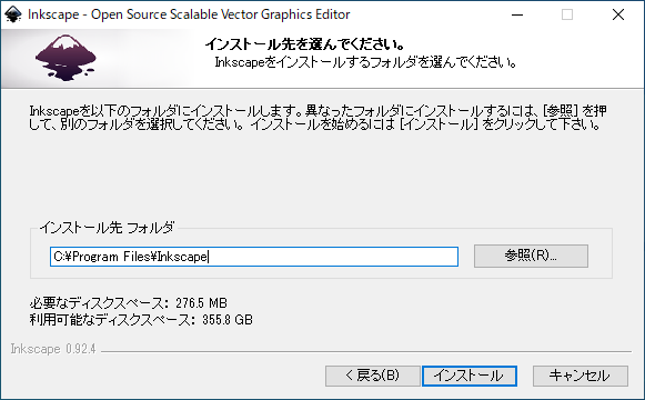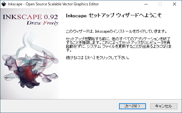 ダウンロードした inkscape-0.92.4-x64.exe を実行します。