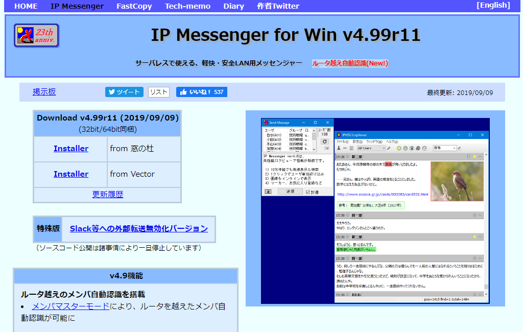 IP Messenger のサイト( https://ipmsg.org/ )にアクセスします。