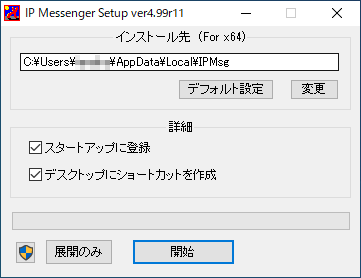 ダウンロードした ipmsg499r11_installer.exe を実行します。