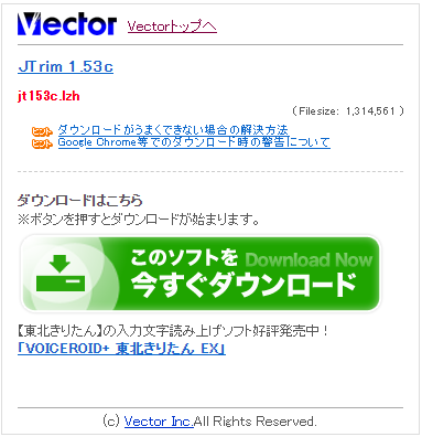 JTrim のサイト( https://www.vector.co.jp/soft/win95/art/se108932.html )にアクセスします。