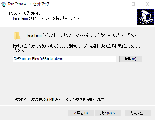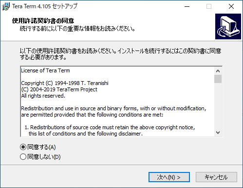 ダウンロードした teraterm-4.105.exe を実行します。