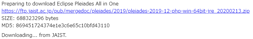 ■ リンクをクリックし、pleiades-2019-12-php-win-64bit-jre_20200213.zip をダウンロードします。